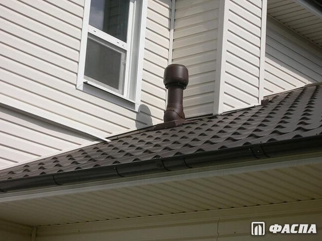 - Универсальный выход. Эта продукция «Металл Профиль» ставится на уровне воздуховода. Зафиксировать изделие можно крепежами к кровельному материалу. Герметизация не нужна.