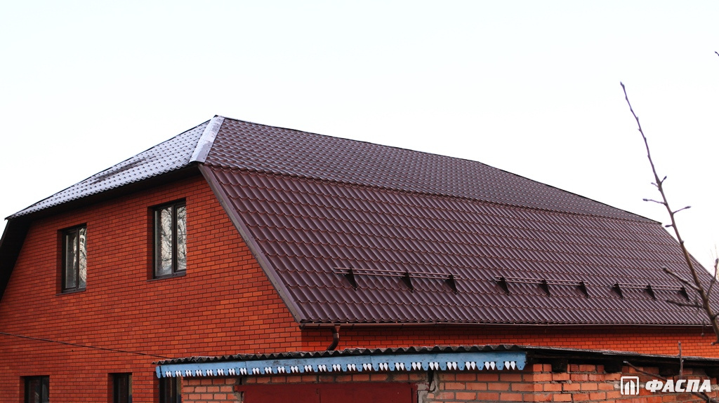 Второй важной составляющей этого материала для крыши является полимерное покрытие «Норман». Делается оно из полиэстера, толщина которого составляет 25 мкм. Покрытие «Норман» имеет гладкую глянцевую поверхность, не выцветающую на протяжении очень длительного срока. Поэтому ваш дом всегда будет выглядеть отлично. Цветовая гамма «Норман» очень обширна, что позволяет легко подобрать кровлю под общий дизайн строения.