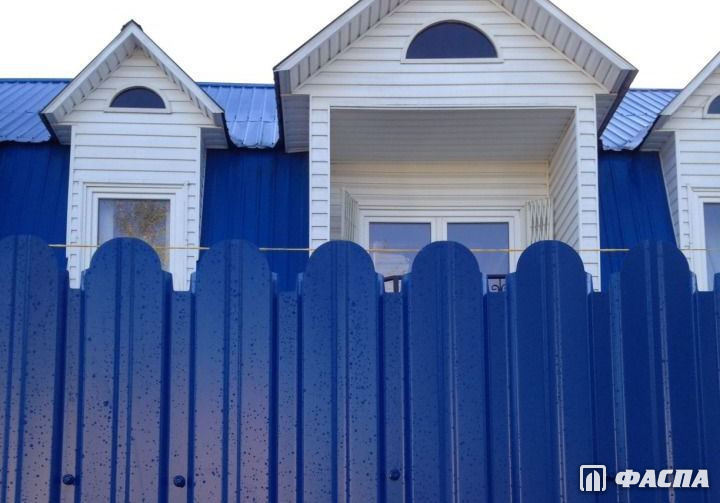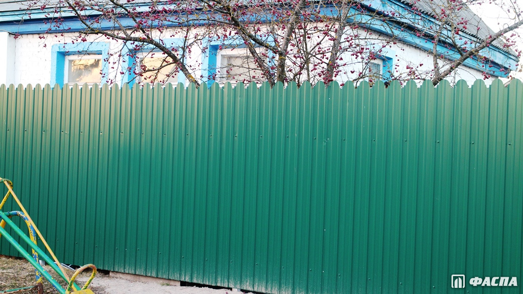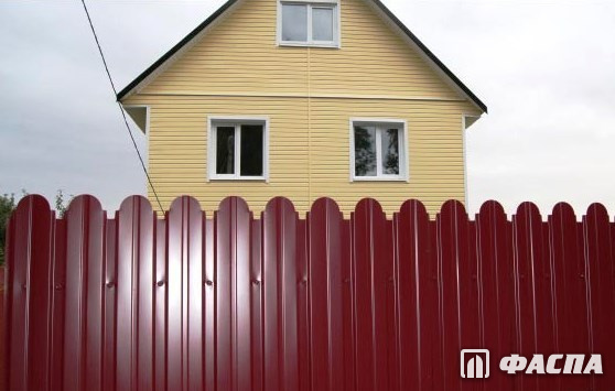 Толщина фигурного профлиста варьируется в пределах 0,35–0,7 мм, что определяет прочностные показатели материала. Есть возможность приобрести листы длиной от 1,5 до 3 метров. Верхняя часть забора украшена декоративной вырубкой. Именно эта особенность делает фигурный профлист схожим с классическим русским ограждением из дерева.